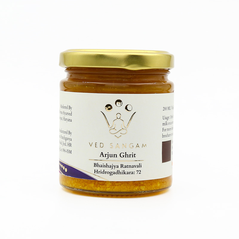 Key Ingredients: Arjuna (16 parts), Haritaki, Bibhitaki, Amla, Haldi, Nagarmotha, Nimbu, Go Ghrita (4 parts)