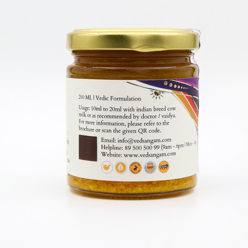 Dosage: 10ml to 20ml with Indian breed cow milk, or as directed by your Vaidya/doctor